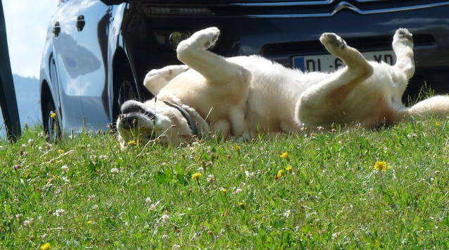 Je suis Djaga, on m’appelle le grand blond, je vais avoir 12 ans ,avec ma maitresse Passiflore je me promène tous les jours,mais je commence à fatiguer…