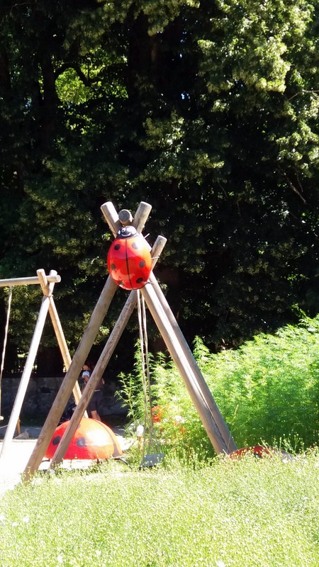 Les coccinelles géantes accueillent les enfants dans l’aire de jeu