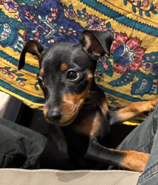 Quant a Ulysse, le pinscher nain de 4 mois, il m’a pris pour sa maman! Il voulait tout le temps téter!Pfff!