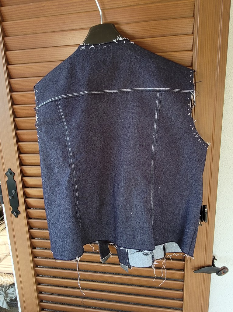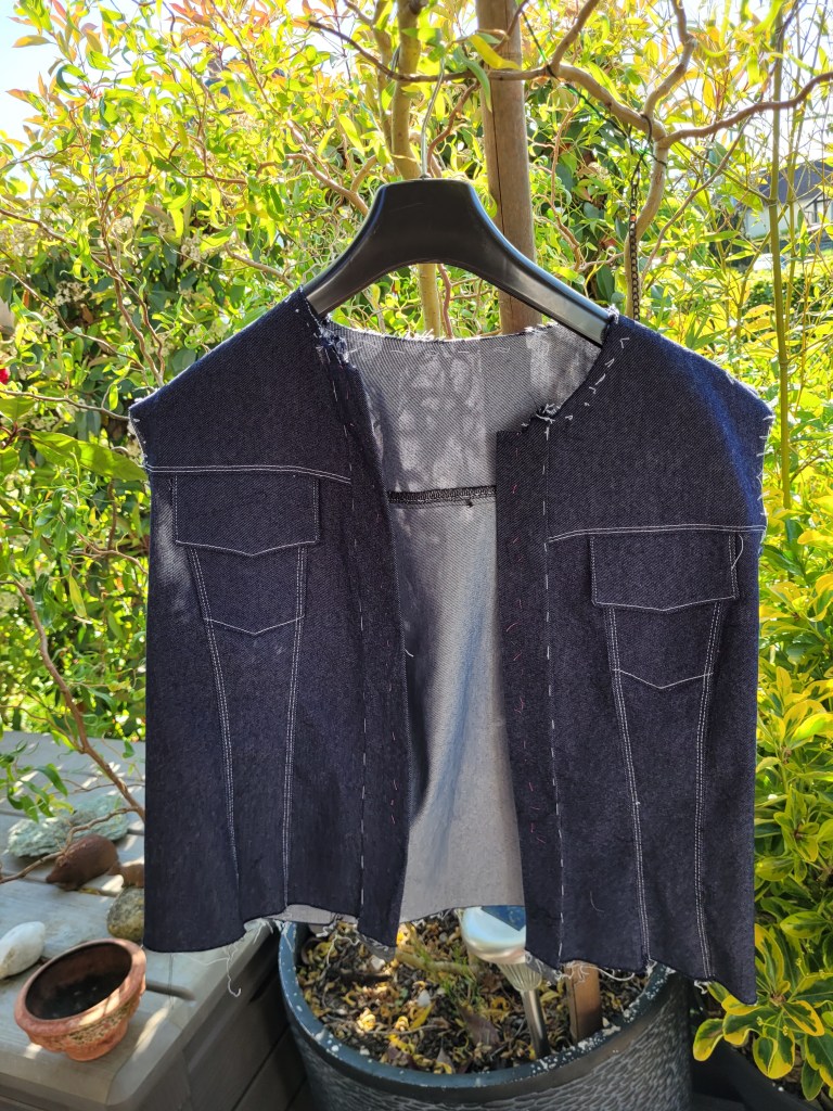 Coté couture ,mon amie Martine, qui vient coudre chez moi le mercredi,a fait une veste en jean!. Comme le modèle me plait bien j’ai décidé de faire la même😄