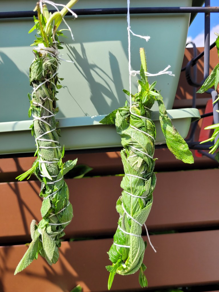 1. Pour les batônnets je les mets dans mon débarras, au sec et dans le noir . Il faut que mes herbes soient complètement sèches sinon ça ne fumera pas!