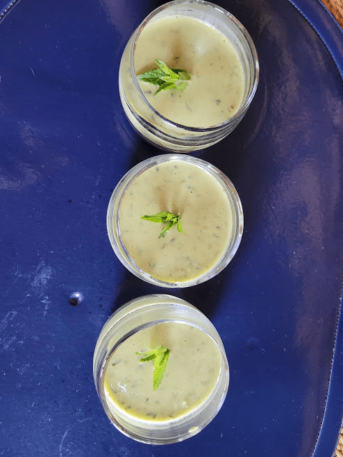 Avec les petits pois du jardin un essai de verrine froide de crème aux petits pois à la menthe