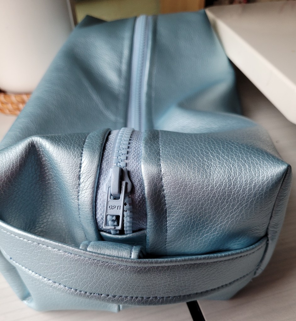 Une trousse de toilette en simili cuir Box Bag Bigger le tuto est là ( il est gratuit si vous achetez le tissu!!)avec une doublure en coton « étoiles »