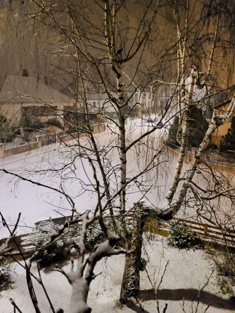 Hier matin,lorsque je me suis réveillée ,en ce début de journée,le jour n’était pas encore levé, les lumières brillaient dans les maisons.J’ai regardé par la fenêtre, la rue était vide, pas de voiture, pas de passant.