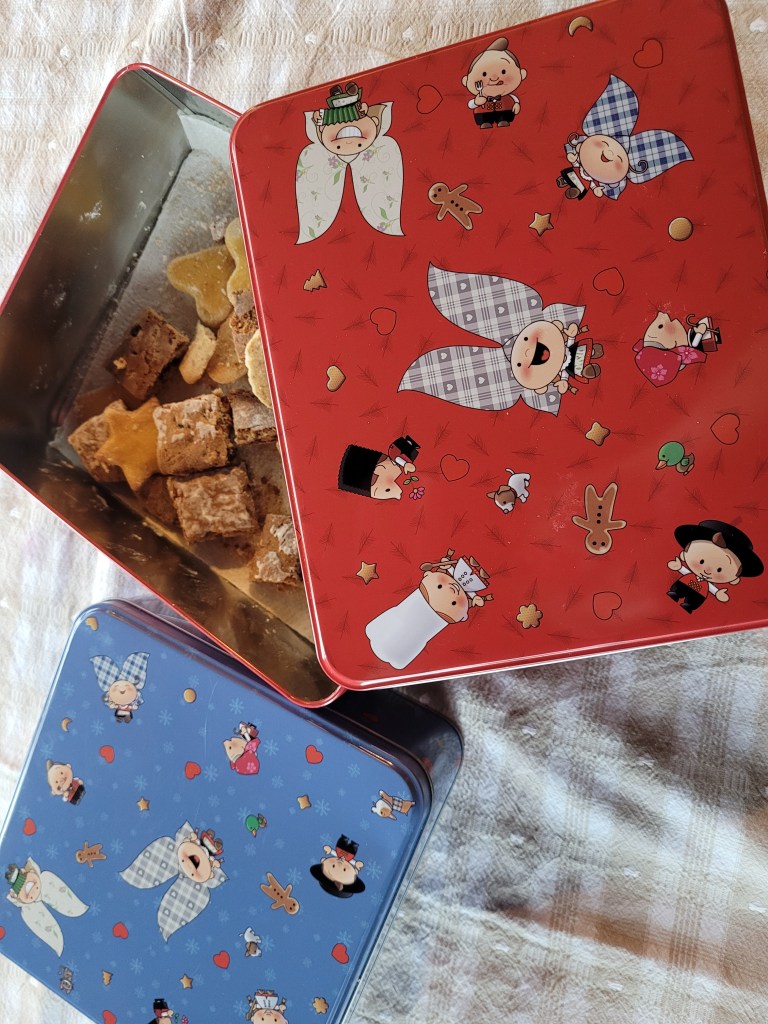 Et mes boites à bredele! J’ai encore les anciennes ,décorées avec les dessins de Hansi,le célèbre illustrateur alsacien, toujours stockées dans mon débarras🤣🤣mais j’ai décidé de renouveller la collection! Désormais mes petits gâteaux de Noël passeront leur temps(pas trop long) dans les boites aux décors plus modernes et qui fait fureur dans les vitrines alsaciennes. Celle du dessinateur Daniel Grandmaire.