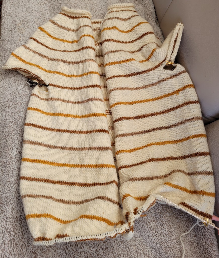Et bien avancé mon gilet. Encore quelques tours de jersey et 5cm de côtes et je termine le corps.