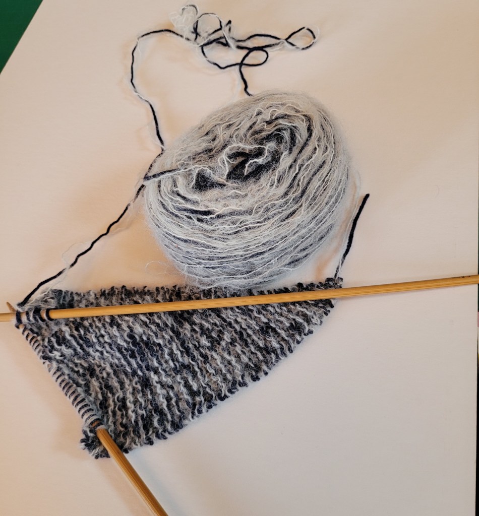 J’ai aussi commencé un nouveau trendy châle en mélange de laine Mérinos et Stellina