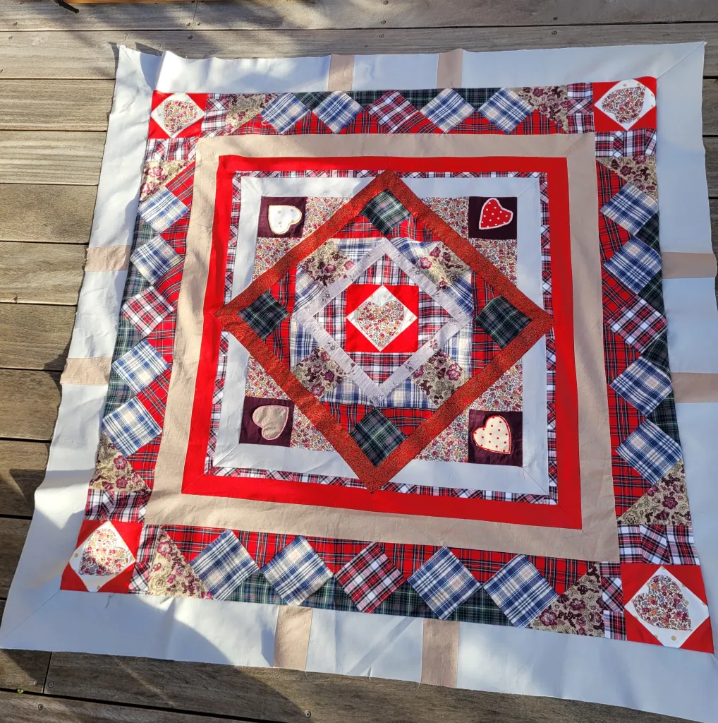 Je finirais avec un cœur plutôt qu’un triangle ton joli plaid, mais à toi le choix ou tire à pile ou face !