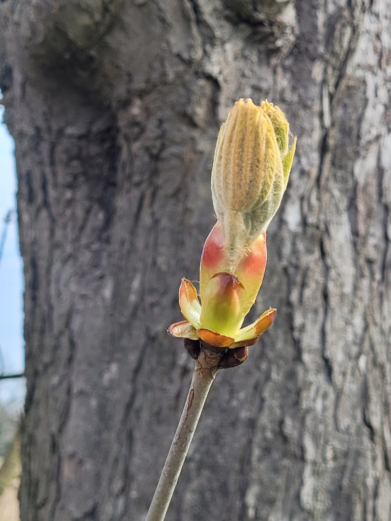 Ce jeune bourgeon de marronnier, avec sa houpette au vent,ses joues rouges, son sourire désabusé et sa collerette ouverte pour attraper les doux rayons du soleil, je l’offre en remerciement à mes nouvelles abonnées, et pour vos gentils commentaires qui me font un immense plaisir.