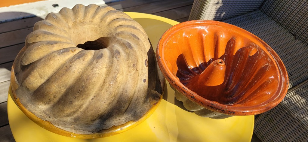 Moi aussi je respecte la tradition, sauf que, je l’ai préparé à l’avance pour ce samedi et que j’avais envie de vous montrer les moules à kugelhopf d’autrefois.