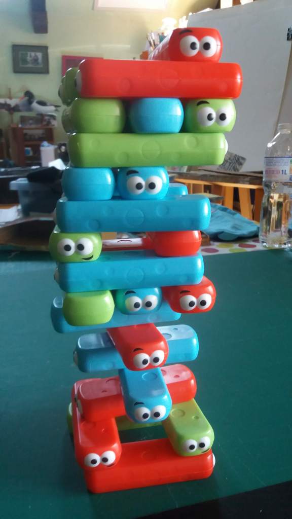 Je ne vais pas vous parler de mes jeux d’enfants mais de celui que mes petits enfants adorent! Sous la pile des puzzles ou du Monopoly junior il y en un qui fait fureur, c’est « ma première tour folle »! Ces petites limaces qu’il faut empiler et surtout ne pas faire tomber! Mais lorsque la tour finie par s’écrouler c’est l’excitation totale et les éclats de rire!