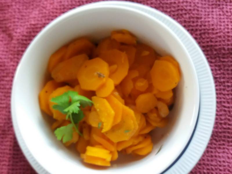 Ajouter les tomates(si vous voulez ,les mettre dans l’eau bouillante puis les peler et les épépiner) ajouter les pommes de terre et les carottes,le 2ème verre d’eau,couvrir,laisser mijoter 40mn à feu doux.