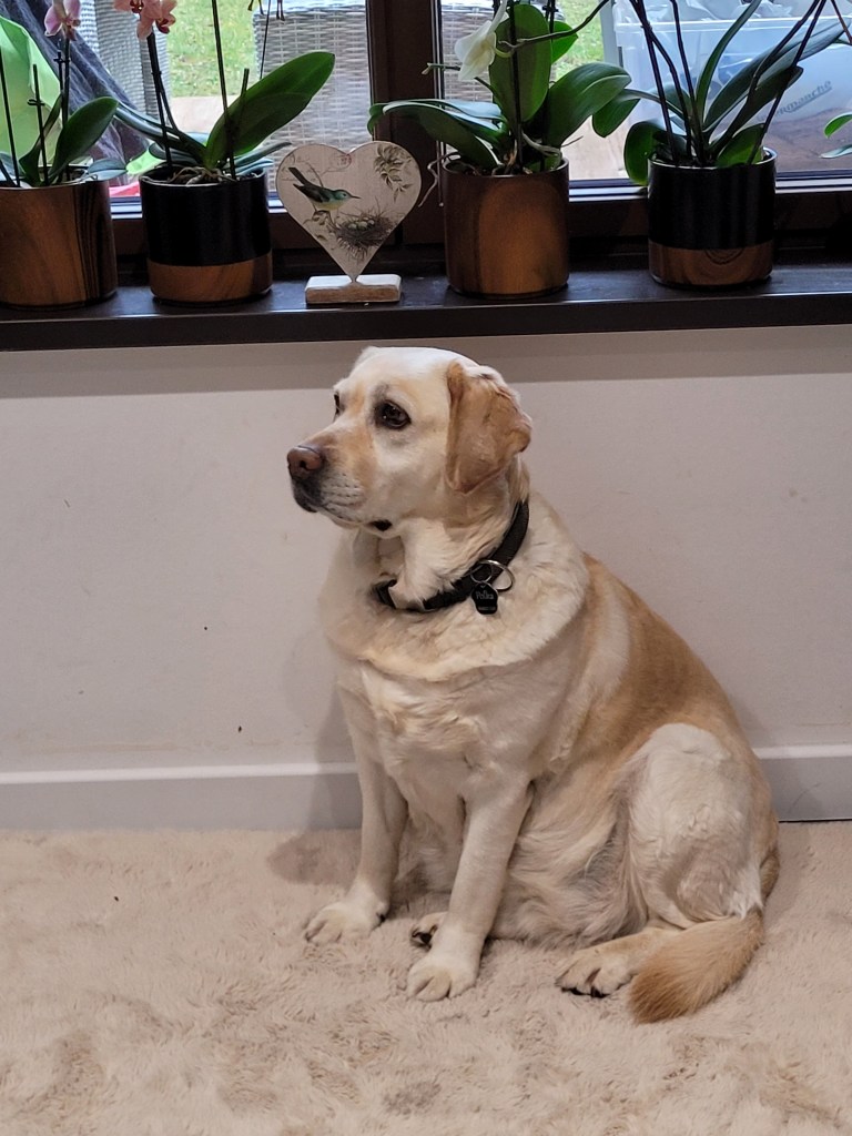 Mais, comme cette histoire de kugelhop vous la connaissez par coeur j’ai eu envie de vous montrer une autre photo du matin. Polka est un monstre de patience, de bonne heure elle vient discrètement se coucher au pied de mon lit , attend que je me réveille , attend que je m’habille, attend que je lui prépare sa gamelle, parfois avec un tout petit peu d’impatience .