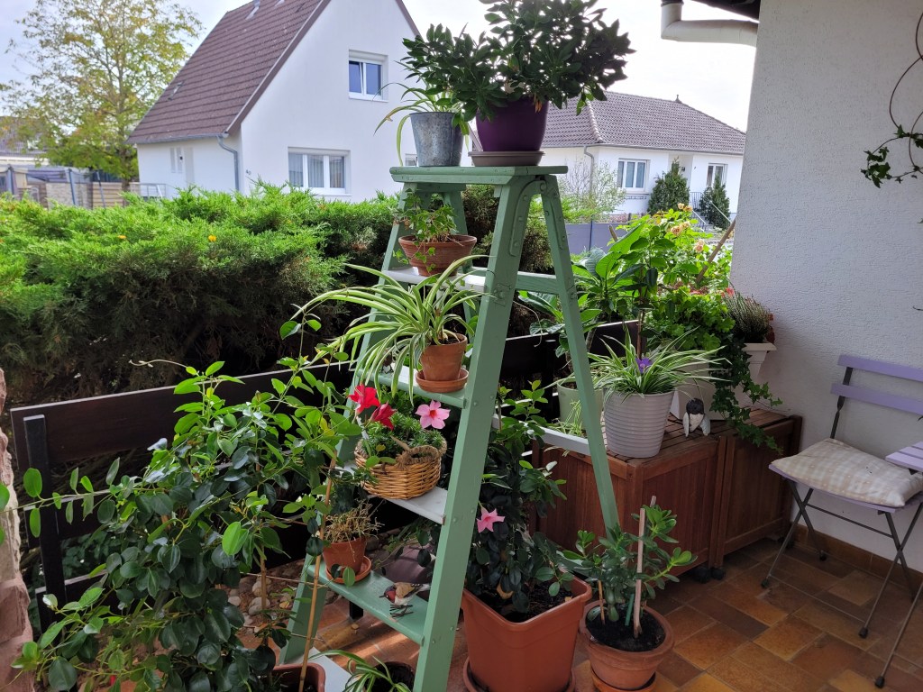Et pour finir beaucoup de rangements, le nettoyage de mon entrée malmenée par le vent, qui fait voler les feuilles de mon vieux bouleau fragilisé par la canicule et le manque d’eau!