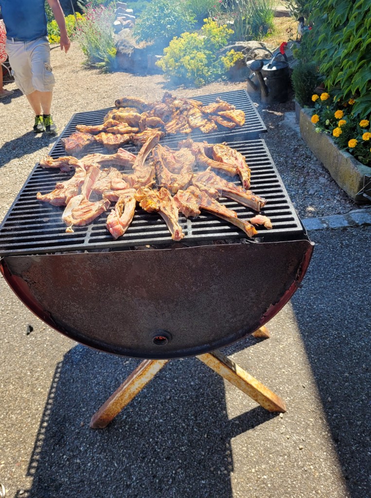 La photo que j’ai sélectionnée pour ce rendez vous avec Ma ,date du mois de juin lors de notre fête familiale annuelle! Nous étions 28 et cette année les chefs cuistots Thierry et Jean François nous avaient préparé un gigantesque barbecue! Cuisson à point, pas de saucisse cramée, tandis que les invités avaient apporté des salades et que les vacherins glacés avaient été offert par ma nièce N°1 pour son 60ème anniversaire!