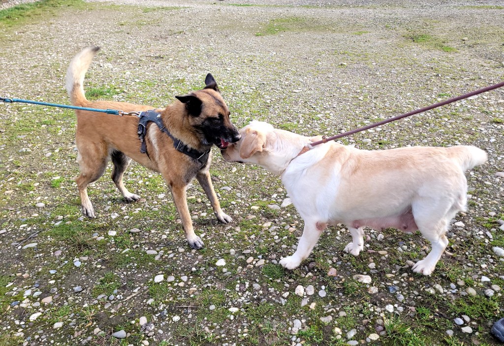 Hier matin j’ai fait une drôle de rencontre! Mes maîtres sont allés voir Sirius et finalement nous sommes allés nous promener avec lui et sa maitresse bien sûr!