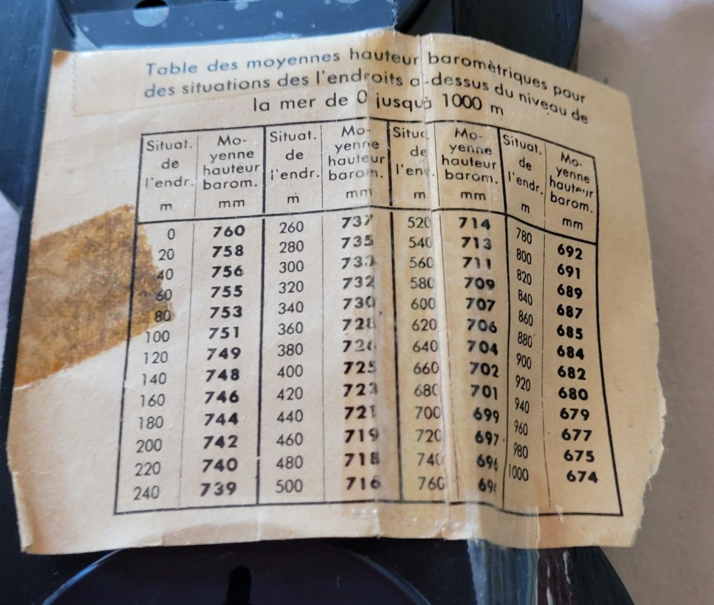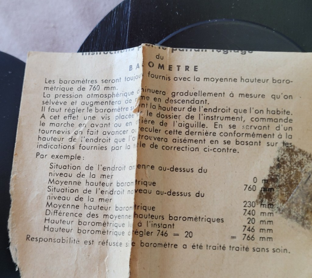 Au dos du baromètre , sur un papier jauni ,des explications pour comprendre son fonctionnement!