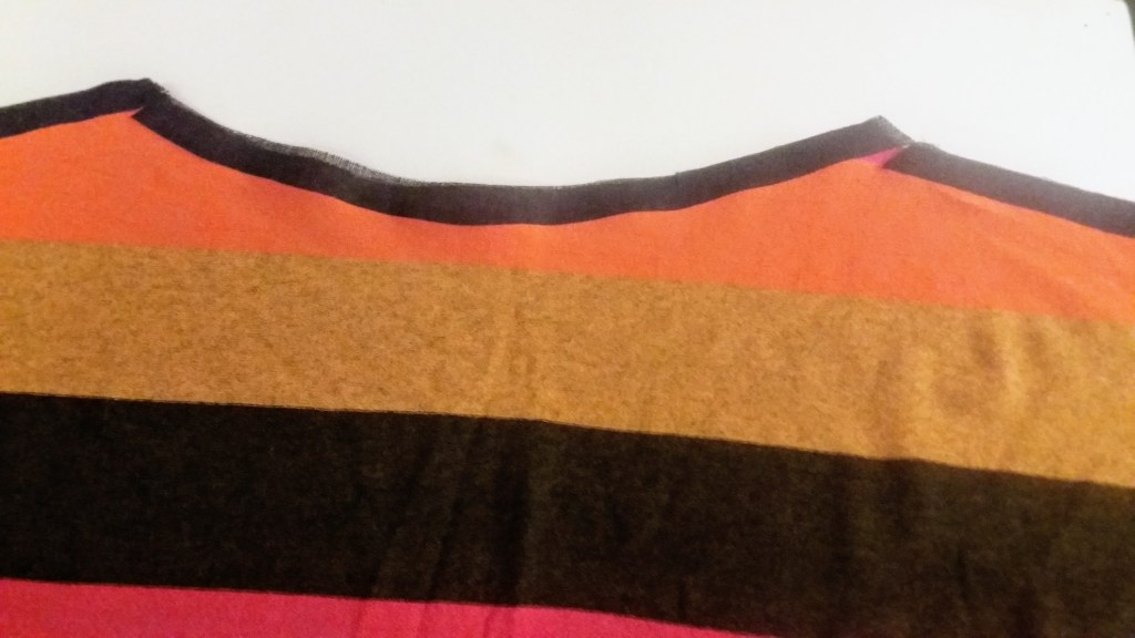 Pour que le jersey ne gondole pas pendant la couture je colle des bandes de viseline sur les bords.